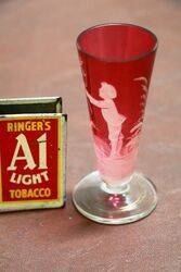 Antique Ruby Glass Small Mary Gregory Funnel Vase.