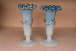 Pair of Victorian Vaseline Glass Vases C1890 7cm wide x 14cm high