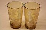 Pair of Antique Amber Glass Mary Gregory Tumblers C1900 great condition no chips or cracks .. 11cm high.