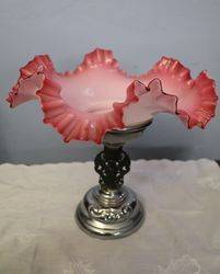 Early Barrel Shape Cut Glass Bowl on Centre Knop Stem Drinking Glass