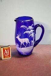 Antique Mary Gregory Style Bristol Blue Jug with Stag. 17cm high.